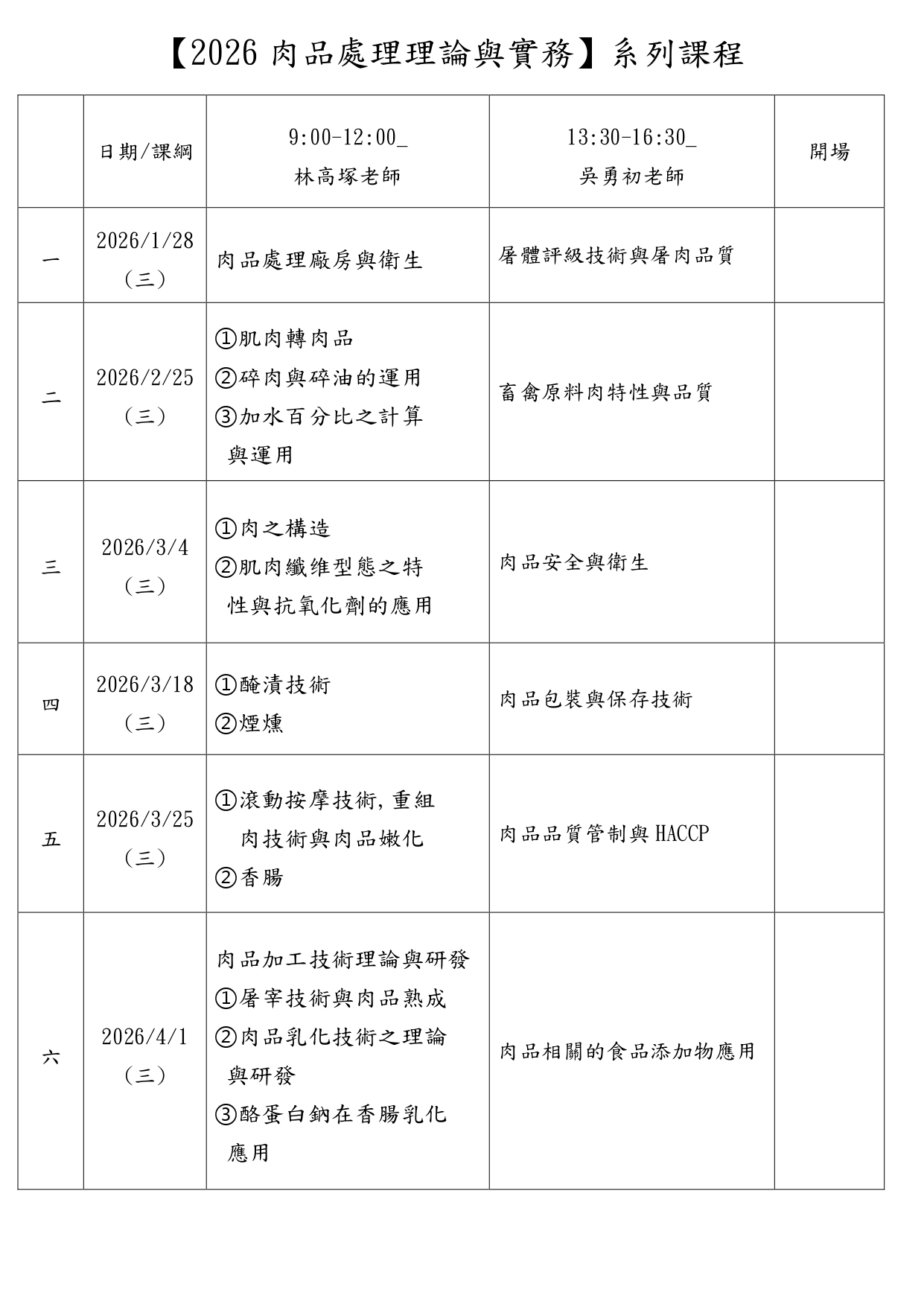 公布單位:肉品協會【2026肉品處理理論與實務】系列課程